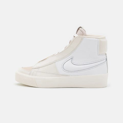 Nike updates one of its best loved and most iconic basketball hi-tops, 1984’s Vandal, ripping up the rulebook to create the Vandalised LX. The women’s only sneaker takes an original Vandal shape and adopts a cut-and-paste aesthetic, surgically paring the luxe white leather uppers in two and fitting them back together again for a makeshift look. Textured taupe suede forms the split Swoosh, toebox and tongue, and the lacing is replaced by a futuristic toggle closure. The muted palette is uplifted at the soles – one in electric blue, the other, rose red.
