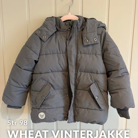 Nydelig wheat vinterjakke farge eggplant (dyp lilla) str 2 år. Brukte denne til hun var litt over 3år. Ingen merker eller hull, veldig god stand. Eneste er at refleksen har delt seg litt et sted.