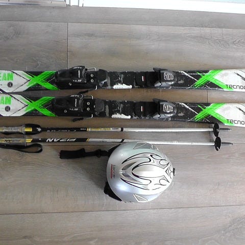 Utstyret er pent brukt og har vært oppbevart i boden i ski- og skopose. Disse følger med og letter transport av utstyret.