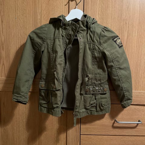 Flott jakke fra Lindex str. 6-7 år, lett fóret jakke. Pent brukt, med fine detaljer. Mørkeblå med behagelig mykt fór innvendig.