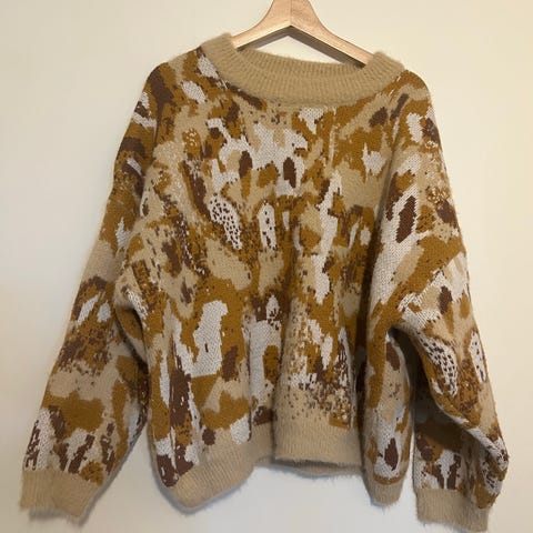 Nydelig ny genser ubrukt selges. Størrelse L. Prislappen er på. Knitres sweater fra Gina Tricot