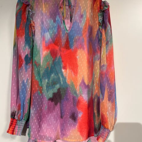 Veldig fin bluse med knapper helt ned og lommer. Fine detaljer som blonder i sidestykker og knapper langs hals. Tror ikke denne er brukt. I såfall bare en gang eller to.