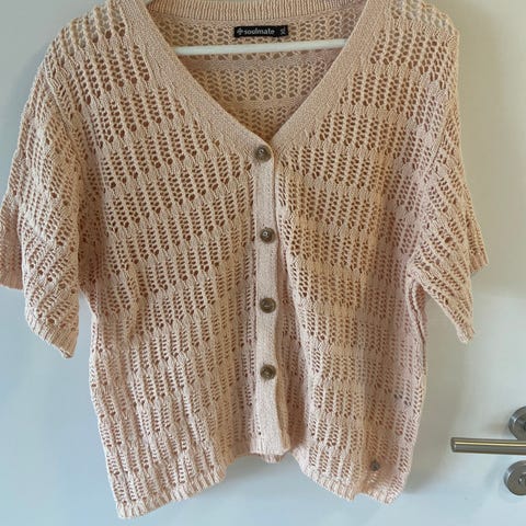 Cardigan / topp fra Segal i str XL brukt 1 gang. Florlett og kjempefin. 100% bomull. Knyting med snor på midten. Volanger. Siste bilde viser Cardiganen sammen med Cream kjole som jeg også selger 😊