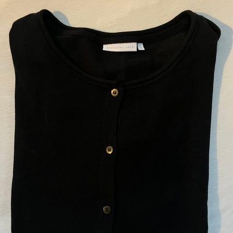 Flott svart genser med smal, elastisk passform, v-hals og knapper.