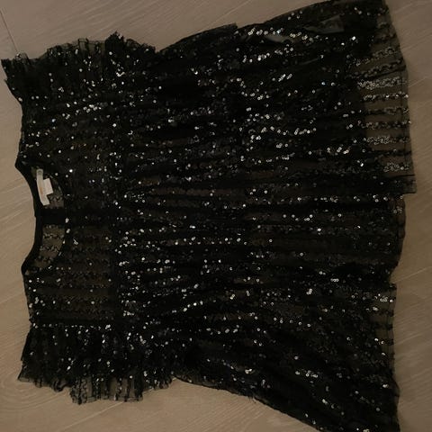 Helt ubrukt glittertopp fra Gina. Kjempefin på, med stramming i sidene. Den er str. XL, men passer alt fra S-XL ettersom hvordan man vil ha den.Helt ubrukt glittertopp fra Gina. Kjempefin på, med stramming i sidene. Den er str. XL, men passer alt fra S-XL ettersom hvordan man vil ha den.