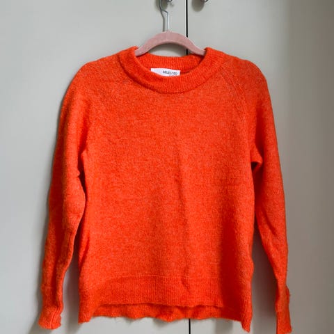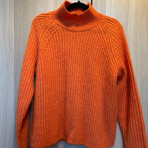 Superfin oransje strikkegenser, str. M