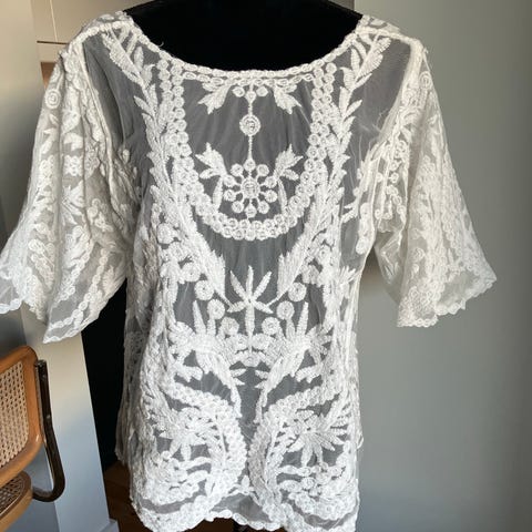 Nydelig blondebluse fra Samsøe, str. M. Liten ståkrage, og halvlange ermer. Pent brukt, ingen bruksmerker.