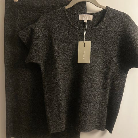 Lekkert skjørt fra Ganni. Tykt stoff i ullblanding. Farge mørk grå.