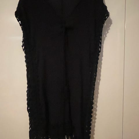 Kjempe fin på, stretch stoff, off-shoulder, splitt ved låret. Aldri brukt, str. S