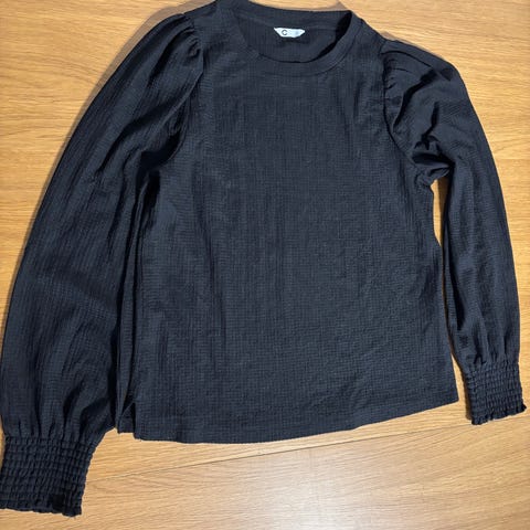 Sort bluse med åpen rygg, str. S, feminin stil