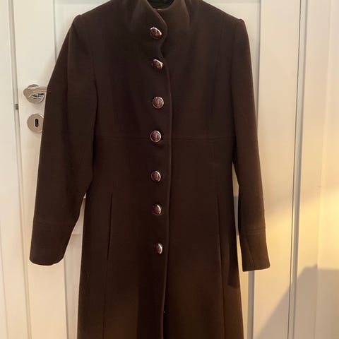Lekker kort ullkåpe fra Haust størrelse 40, stor i størrelsen. 70% ull, 10% cashmere, 20% nylon. Svinget og kneppes helt opp med liten ståkrage. 2 stikklommer foran. Mål over bryst 112 cm, hel lengde 99 cm. Så og si ubrukt.