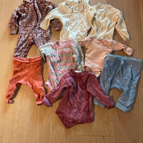 - nattdrakt i ull, str. 56/62 (lilla striper)