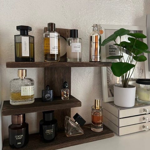 En fin akryl hylle for parfyme eller sminke.