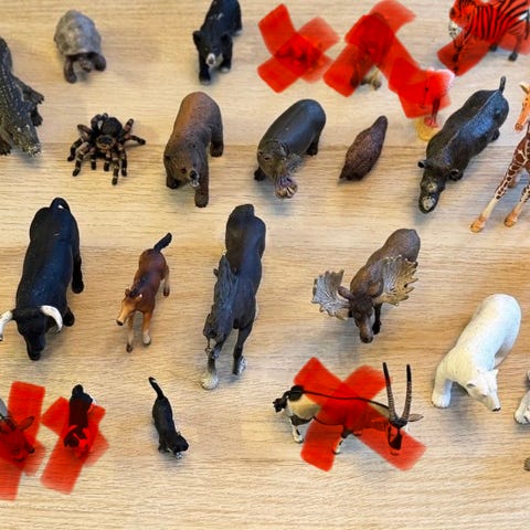NB! Tar forbehold om at noen av dyrene ikke er Schleich/Papo/Collecta.