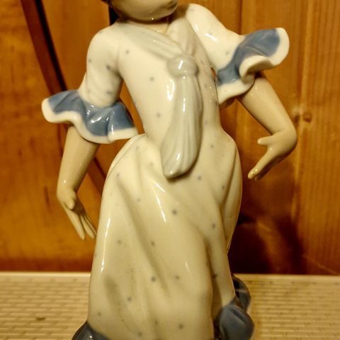 Figuren har stått i vitrine, bak glass og fremstår som var den ny. Den er 23 cm høy.