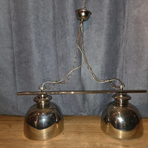 Lampe 38cm høy og 28 cm diameter. Fra lampe til tak ca 60 cm (kan kortes ned i kjettingen)