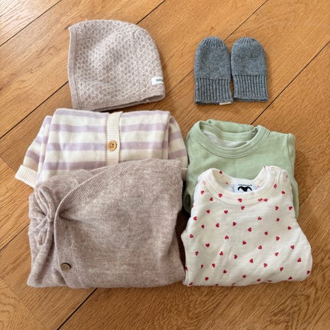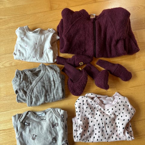 Klespakke med dress, Janus ullsett, lue, mellomlags i str 68
