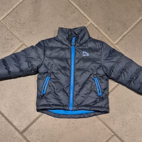 Selger tykk og god vinterjakke i str 86. Avtakbar hette og fuskepels. Pent brukt. Løs strikk og en knapp som mangler på pelsen, se bildet. Påvirker ikke bruken noe særlig. Ellers i god stand.