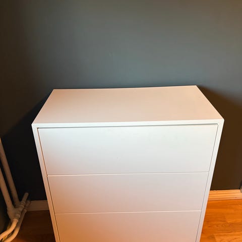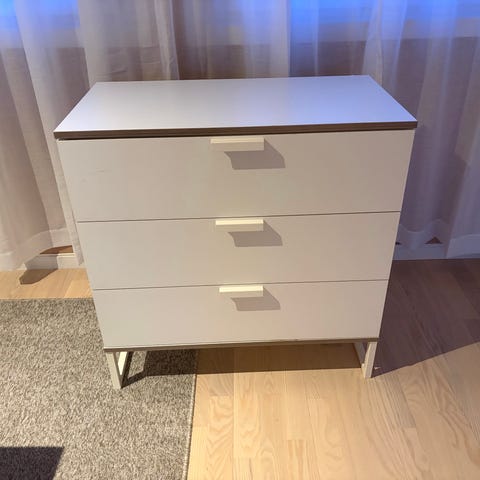Nydelig pen i hvit matt farge, lett og pen minimalistisk kommode.