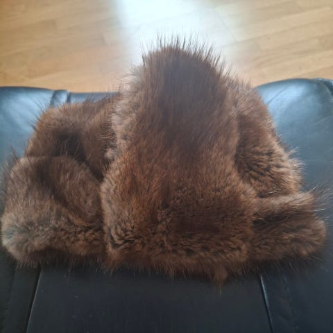 En lekker pels lue i ekte Bison! Veldig pent brukt og den er foret inni. Laget i Finland.59 cm i diameter.