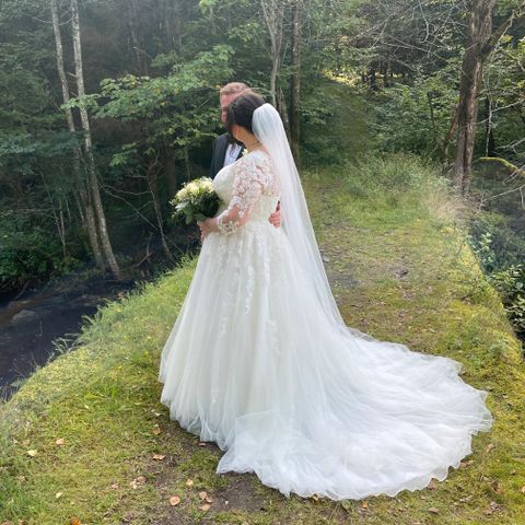 Kjolen er fra 2023 og brukt en gang i vårt bryllup.