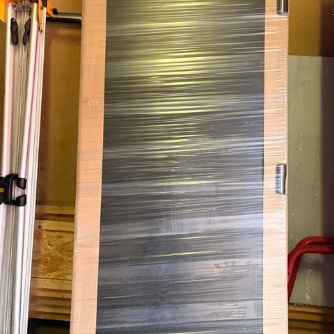Skyvedøren kan sees og står på vårt lager hos Itide Transport, Borgeskogen 13, Stokke Åpningstider 8-16.