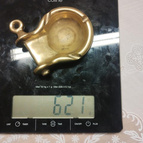 Fint naturlig hull i skallen for oppheng på spiker .