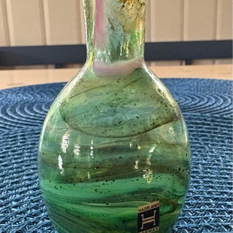 Flott vase som ikke har noen feil, den har stått i skapet i mange år. Den er 26 cm høy. Jeg kan ikke sende varen.