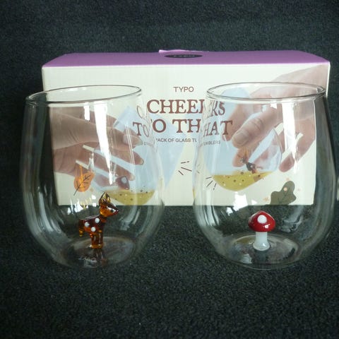 - Large stemless wine glasses