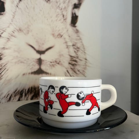 Jeg har ytterligere to kopper, to eggeglass og en skål i samme serie til salgs, se egen annonse ;)
