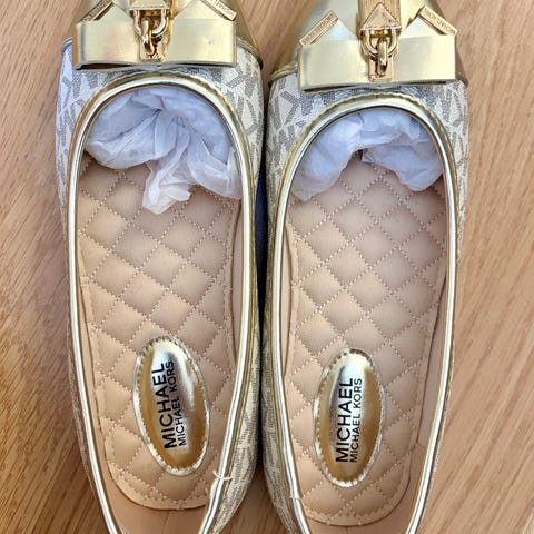 Michael Kors sko i str. 33, sølvfarget med sølvdetaljer.