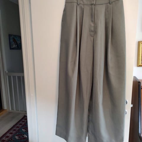 Pent brukt bukse med høyt liv og legg. Flatterende modell i brungrå farge.
