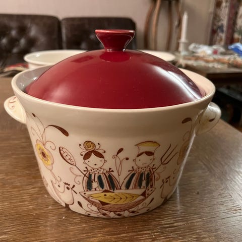 En stor og en liten ildfast gryte med lokk + fat 32 cm selges samlet.
