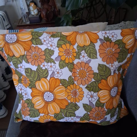 Retro pute trekk 33x33cm. Trenger pute å sys sammen. Må hentes