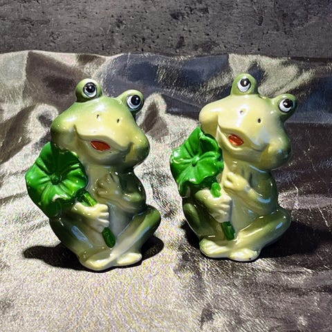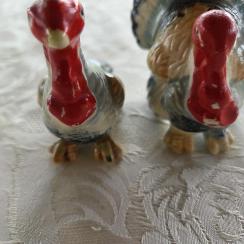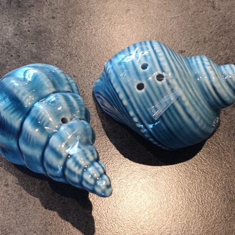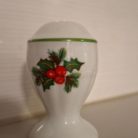 1 stk. salt-/pepperbøsse, høyde 9cm, diameter nederst 5cm kr. 50,-.