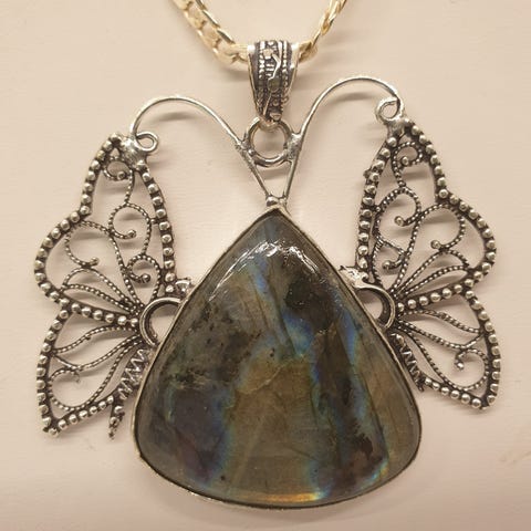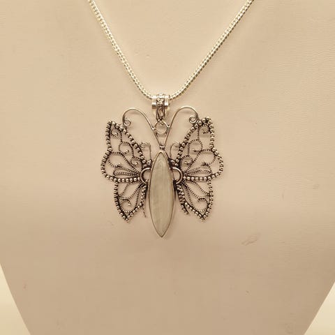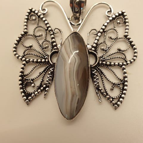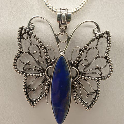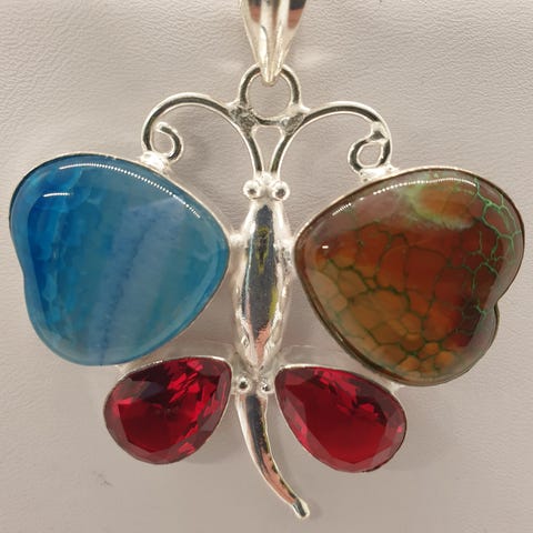 Anheng i sølv 925 "Sommerfugl" i blå Chalcedon. Uten kjede