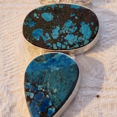 Et stilfullt anheng i sølv 925 med blå Chalcedon. Uten kjede.