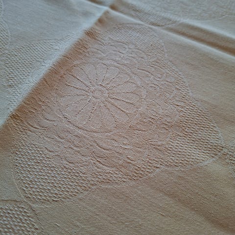 1 rød rund duk i glatt stoff med mønster