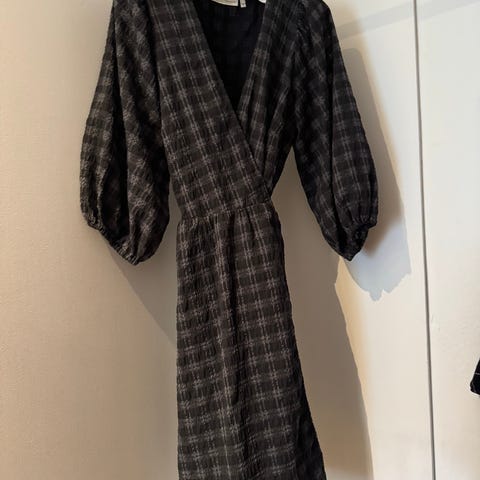 Veldig fin kjole. Innsydde snitt som gjør at kjolen ser svært flatterende ut på. Forseggjort innsying av glidelås bak. Perfekt å pynte opp og ned. Knelang til meg som er 160 cm høy. InWear.