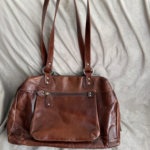 Springfield veske nett i skinn. Lukkes med glidelås og det er en utvendig glidelås på baksiden. Innvendig er det glidelås lomme