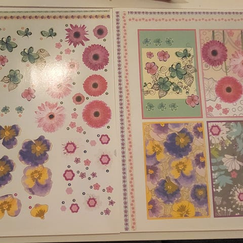 Til å lage 3D motiv. 4 forskjellige motiv. Alt på et ark. Totalt 10 ark. Selges samlet. Se på bildene hvor mange det er av hvert ark