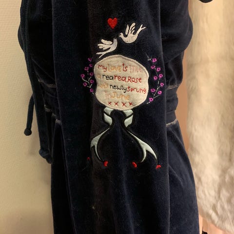 Ubrukt kjole i brun velor med div merker selges.