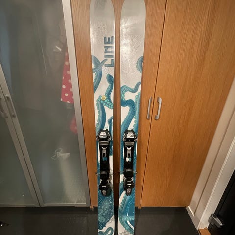 Selges uten binding. Det har tidligere vært montert Salomon Shift binding for str. 23,5(37) på skien. Skruehull er ikke plugget.