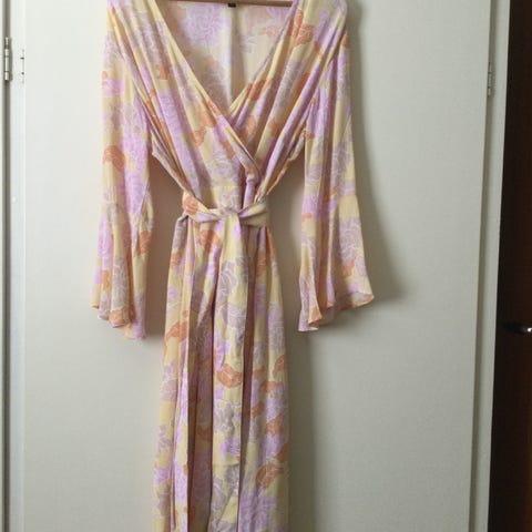 Hel lang kjole med glidelås i siden , underskjørt og lange ermer. Perfekt til sommer festen 🧡🌸💛