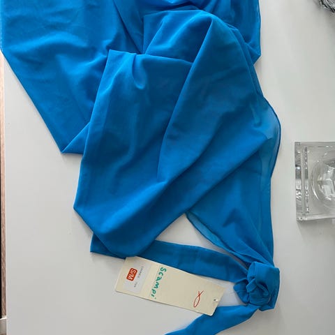 Fantastisk stranddekke fra Fabulous Agilita, størrelse s/m. Brukt en gang til å ta bilder. i perfekt stand. helbrodert og flytende stoff.