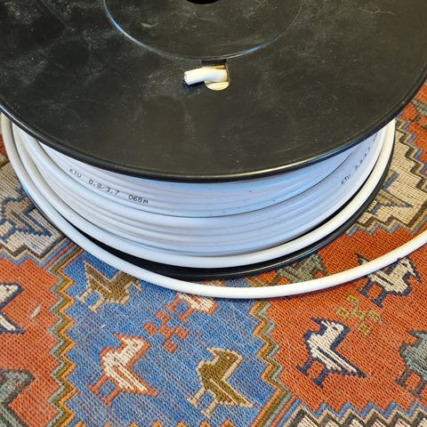 På trommelen er det 67 meter. Bunt 50meter. Selges samlet. Sendes ikke.