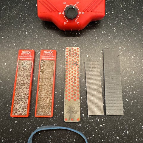Jeg slet med å finne et økonomisk alternativ til swix sine kantbehandlinger. Så da tok jeg ski-prepp-nerdehatten på og designet en egen kantsliper med et mer ergonomisk grep, og integrerte en liten mutter og en sekskantbolt, så hadde den plutselig en justerbar integrert klemme. KJEKT!