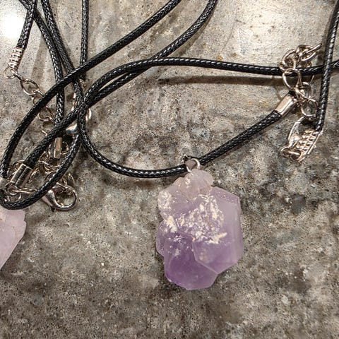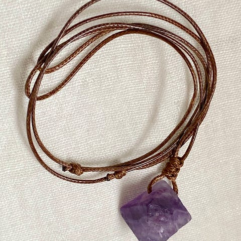 Smykke nr. 3: Anheng i hvit/grå/lilla sten. Pris 499 kr. Kjøpt i Singapore.