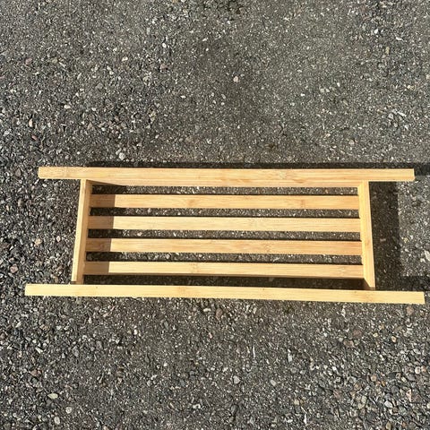 Bambusbrett til å ha stæsj i over badekaret.