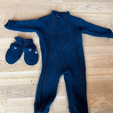 Ubrukt molo fleecedress i pen blåfarge og med grønne morsomme lommer - 220 kr
